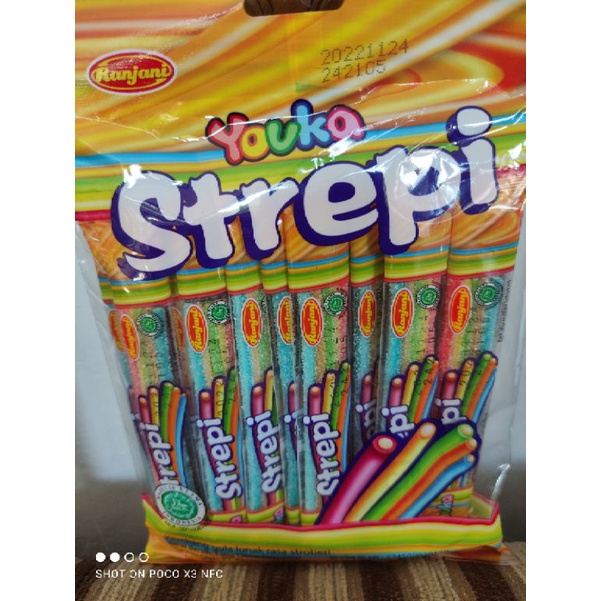 Komposisi : gula, sirup glukosa, glukosa, pengemulsi gelatin sapi, pati kentang, pengental pektin, pengatur keasaman asam sitrat, perisa sintetik, pewarna makanan.