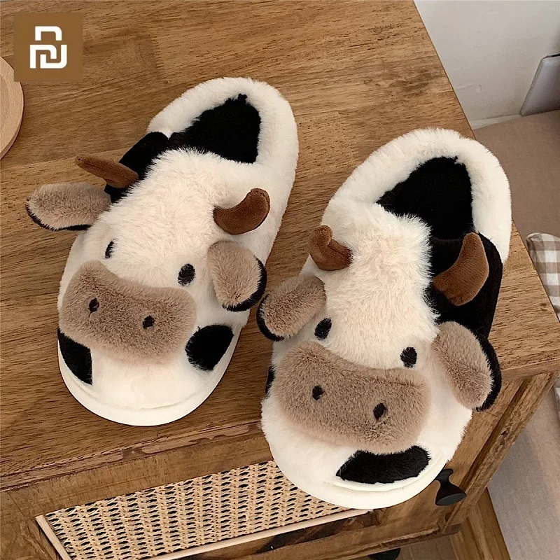 Youpin молочная корова пушистые меховые тапочки женские зимние теплые закрытые плюшевые домашние тапочки Жираф Симпатичные сланцы с животным...