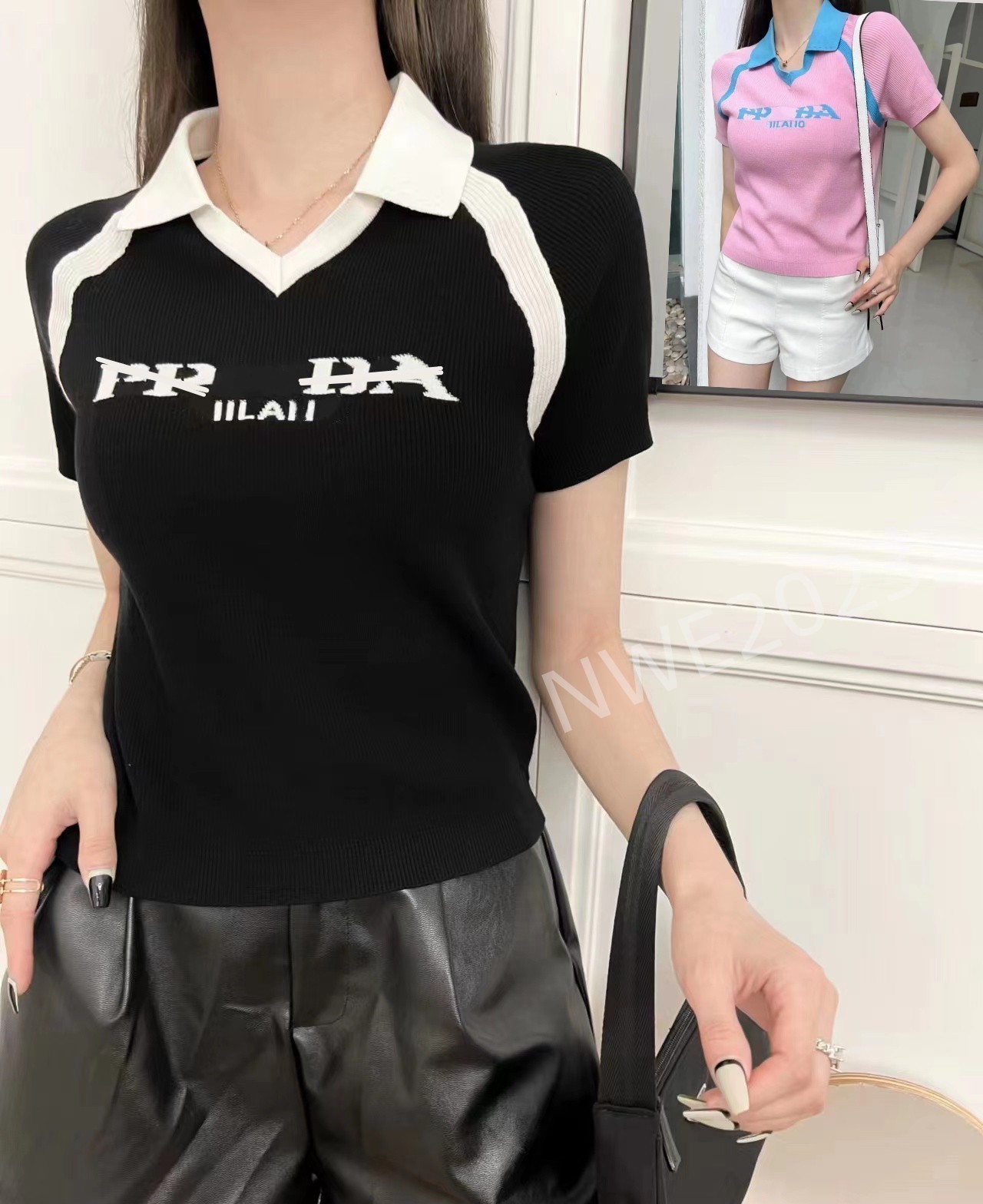 Designer shirt Tops Women t shirts Women' Tops Tees Fashion V-Neck Short Sleeve knitting t shirt Letter Print Sunscreen Top womens clothes, Black