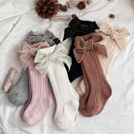 Yousheng 1 пара детских носков, дышащие, с бантом, в стиле принцессы, блестящие, сохраняющие тепло, однотонные, утолщенные, детские носки для девочек, детская одежда