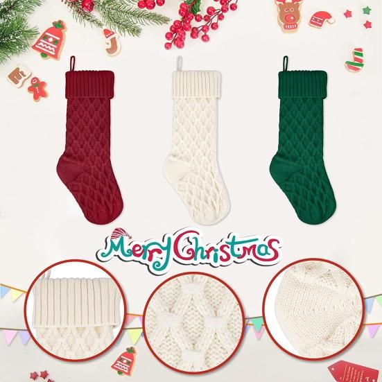 Yousheng 18 дюймов однотонные рождественские чулки большого размера с ромбическим узором, конфеты, подарок, мягкая шерстяная пряжа, вязаные носки