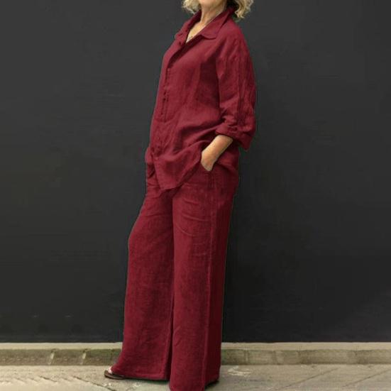 Yousheng, 2 шт./компл., женская рубашка и брюки, комплект со свободными лацканами, однобортная блузка средней длины с длинными рукавами, эластичная талия, широкие брюки, повседневная одежда