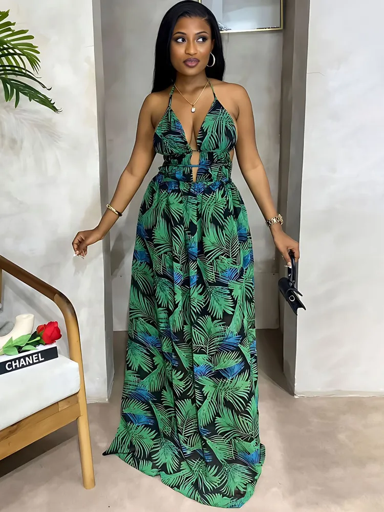 SKMY Sleeveless Backless Long Dresses Fashion Print Summer Clothes Vacation Outfits For Women 2024 Deep V Spaghetti Strap Dress