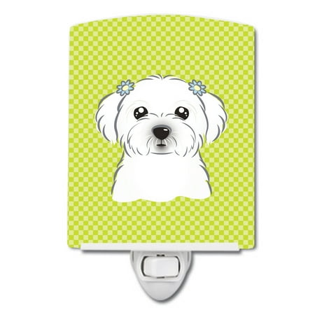 Caroline s Treasures BB1270CNL Checkerboard Lime Green Maltese Ceramic Night Light 6x4x3 multicolor
