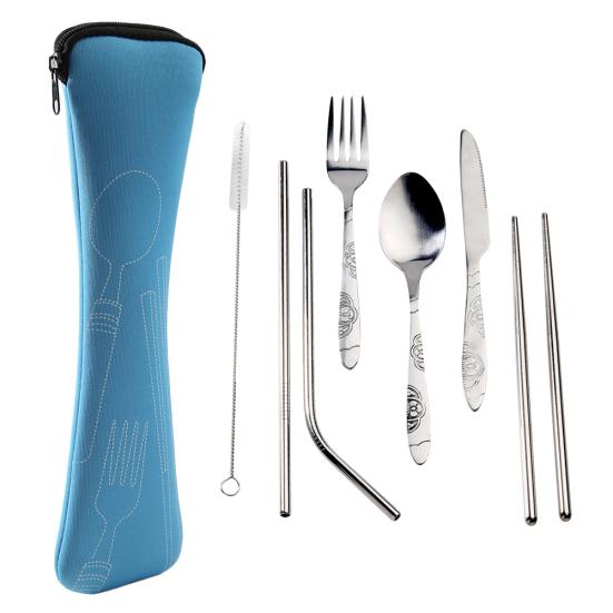 Yousheng 7 шт./компл. портативные уличные ложки из нержавеющей стали, вилки, палочки для еды, соломинки, столовые приборы фиолетовый