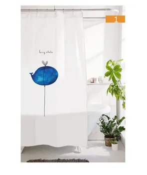 Minimalist Cartoon Fish Fox Shower Curtain Waterproof Polyester Toilet Partition Curtain Bathroom Curtain with Hooks Home Decor