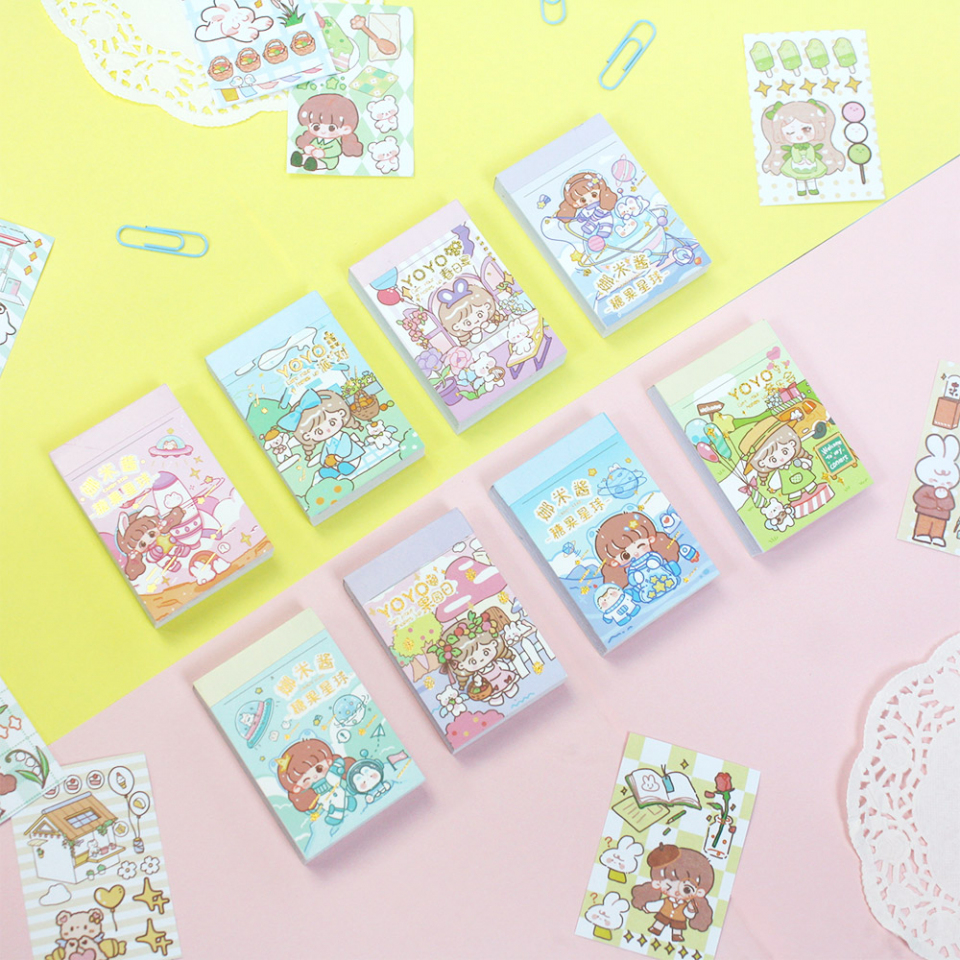 Mini stiker dalam genggaman tangan, buku stiker Yoyo Candy Star ini bisa ditempelkan langsung atau digunting seperlunya, tiap lembarannya berisi mini stiker - mini stiker objek dan karakter yang menggemaskan. Cocok untuk mengasah ketrampilanmu! Bentuknya yang ringkas mudah disimpan dan diselipkan di kotak pensil.