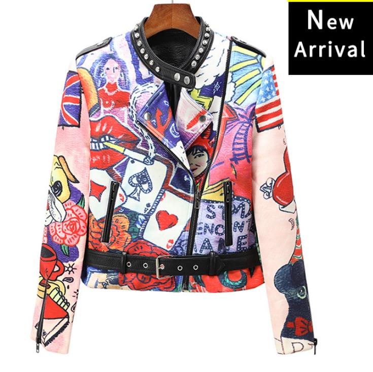 YuNYi Sujin + мотоциклетная кожаная одежда для женщин + принт + клепаные панк + модная брендовая модная мотоциклетная одежда