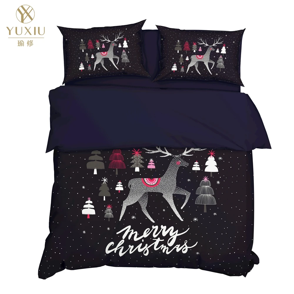 YuXiu 3D печать животных Рождественская елка пододеяльники черный комплект постельного белья Постельное белье наволочки Король Королева Полный двойной