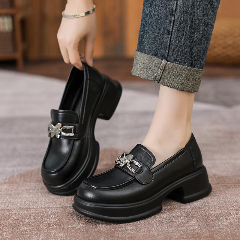 Yuexinwang натуральная кожа плоская подошва для женской обуви Huizhou виноградная мать же маленькие кожаные туфли черные универсальные высокие мокасины толстая подошва 40