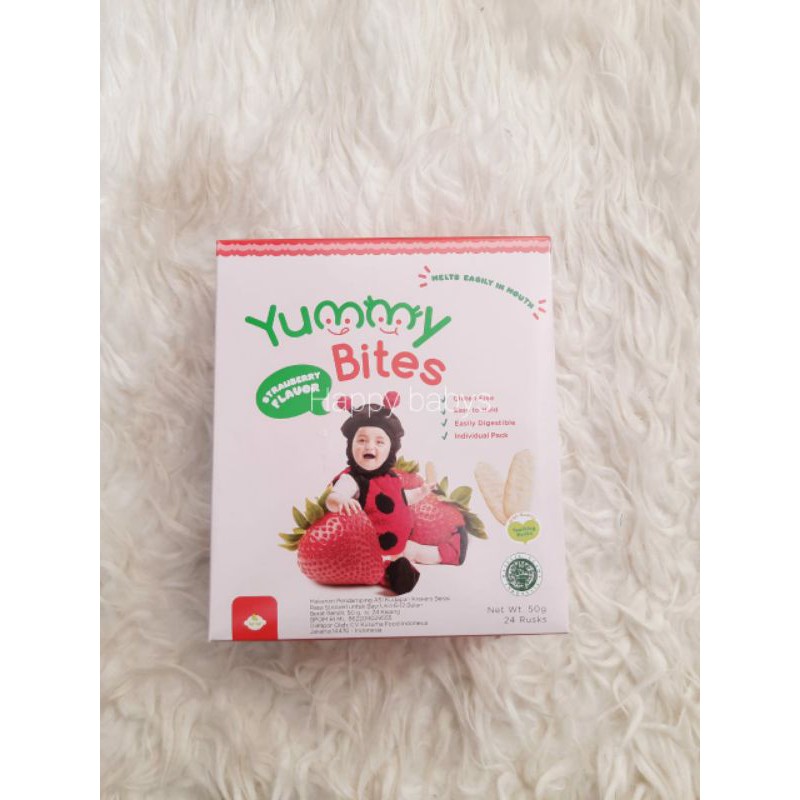 Yummy Bites Rice Crackers merupakan biskuit pertama semi padat yang memiliki kandungan lemak rendah dan juga bebas dari kandungan telur, gluten, kacang-kacangan, bahan pengawet dan bahan buatan. Tentunya membuat biskuit Yummy Bites sangat cocok untuk bayi yang memiliki alergi dengan bahan-bahan tersebut.