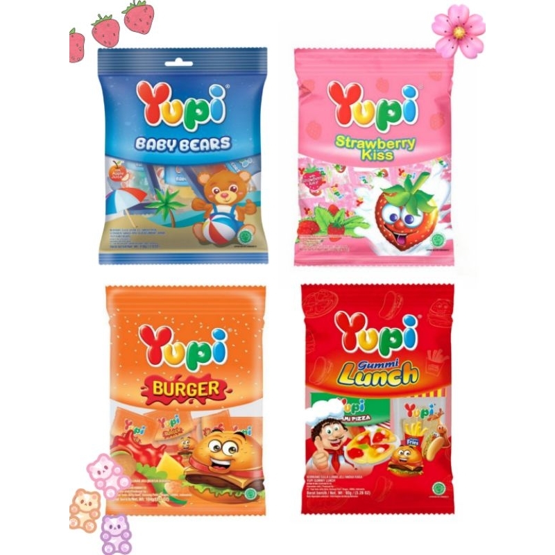 Yupi dengan bentuk menyerupai makan siang yang memiliki tekstur chewy dan kenyal