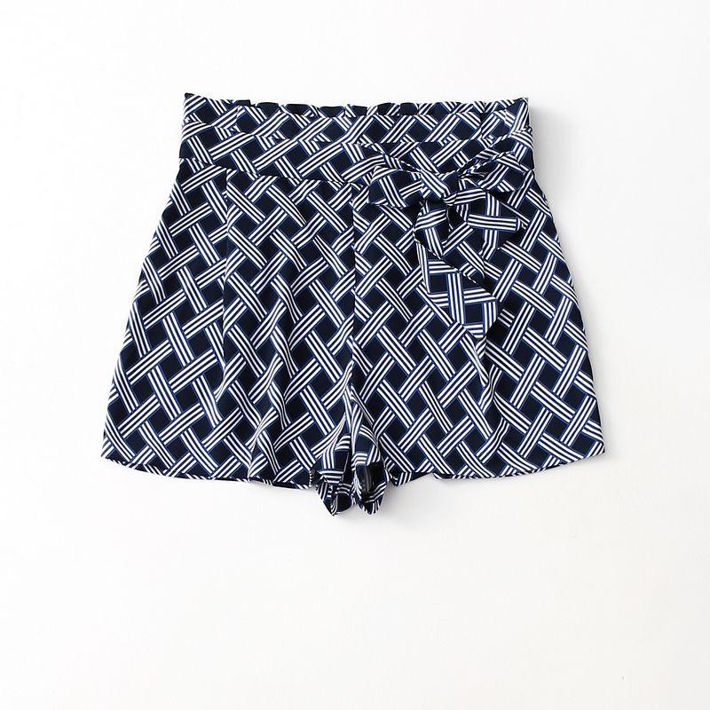 Z s Внешнеторговый Оригинальный Заказ Клетчатые Тканые Стильные Летние С Завышенной Талией Тонкие На шнуровке Эластичный Рукав Шифоновые Шорты Женские Blue Check Eurocode-L