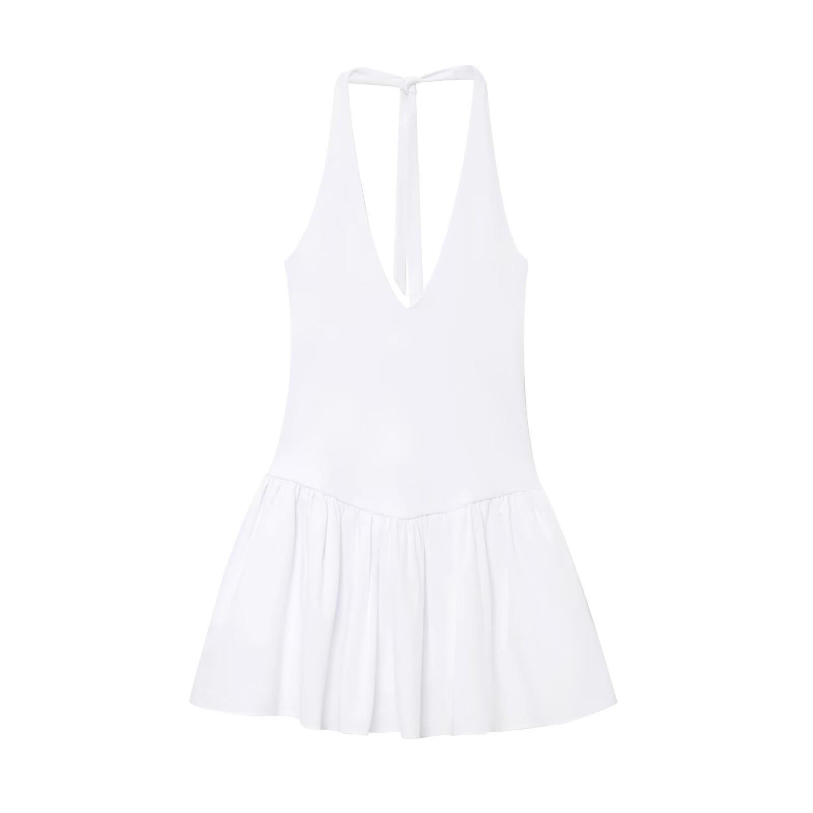 ZA Женское платье 2025 Весна Сексуальное облегающее однотонное платье с халтером Large белый