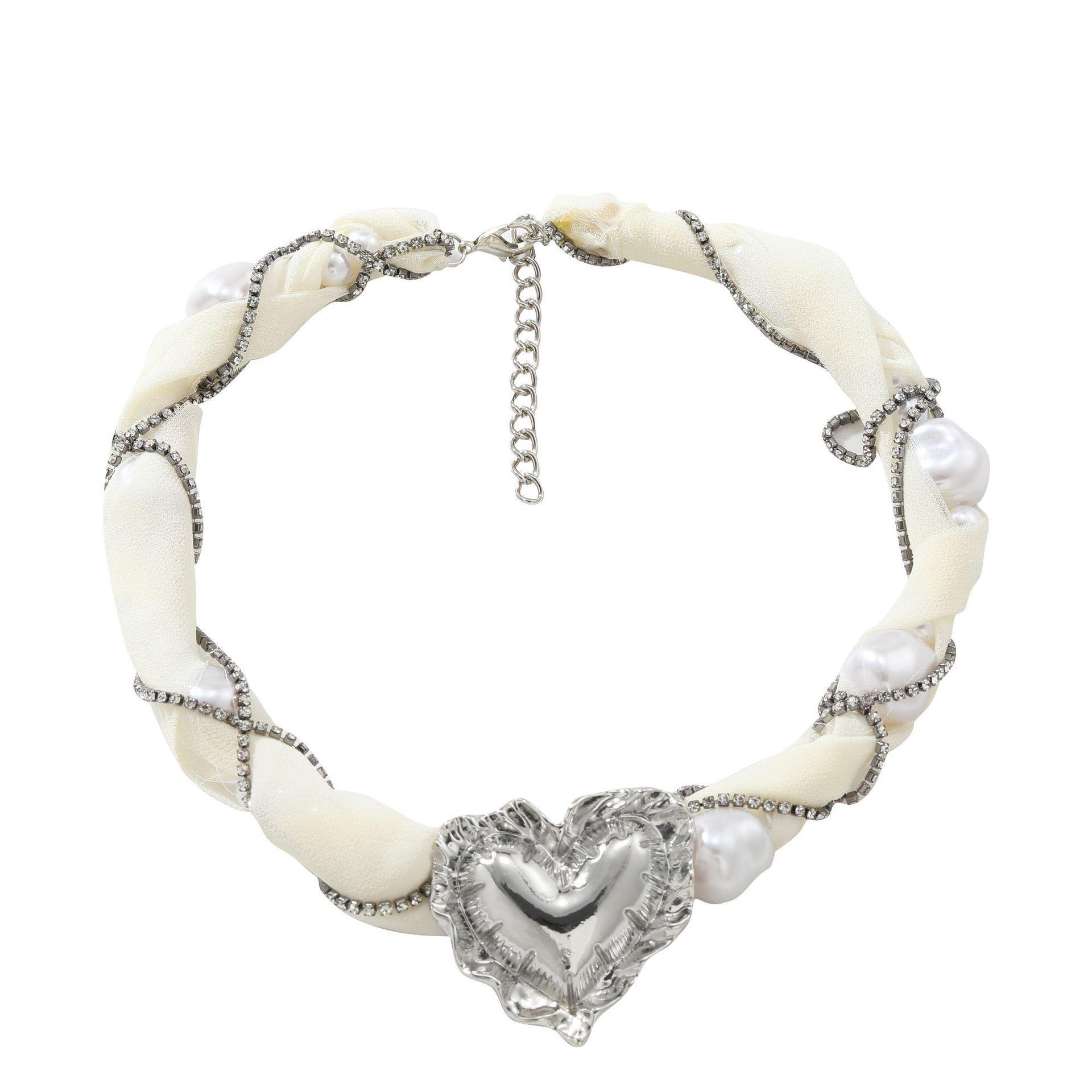 ZA Ретро французское ожерелье из сплава в форме сердца с жемчужной сеткой и цепочкой с бриллиантами на ключице серебряный