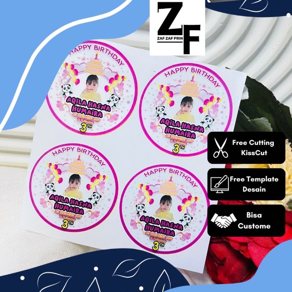 ZAF 2-4 Vinyl Stiker Ulang Tahun Sticker Label Undang Happy Birthday Uk.Kecil Free Design