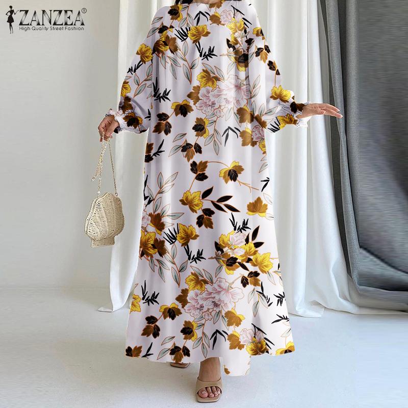 ZANZEA Весеннее женское свободное длинное платье с цветочным принтом и пышными рукавами