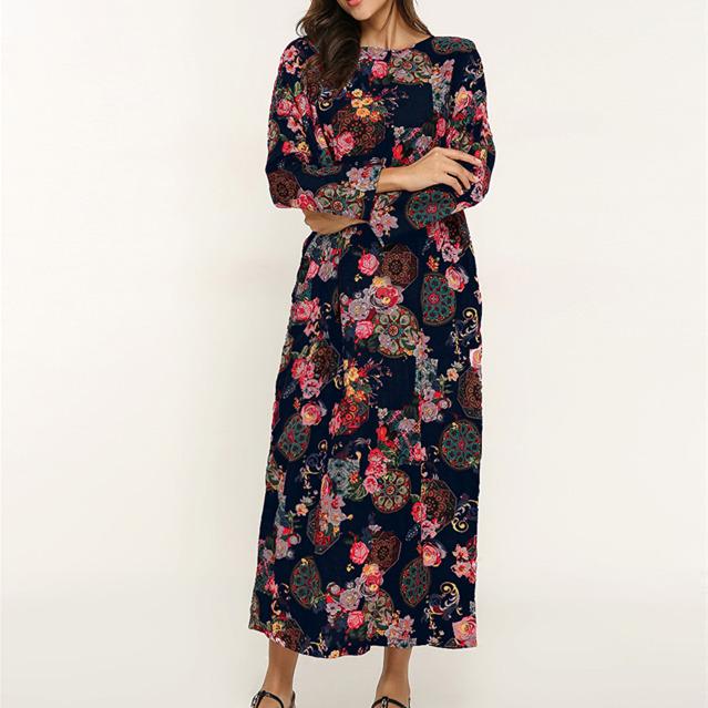 ZANZEA Женская мода Ретро Цветочный принт с длинным рукавом Хлопок Длинное платье