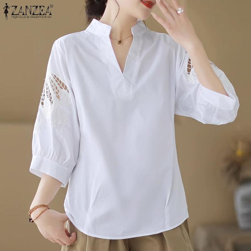 ZANZEA Женская повседневная летняя блузка с V-образным вырезом и рукавом 3/4 в стиле пэчворк S чёрный