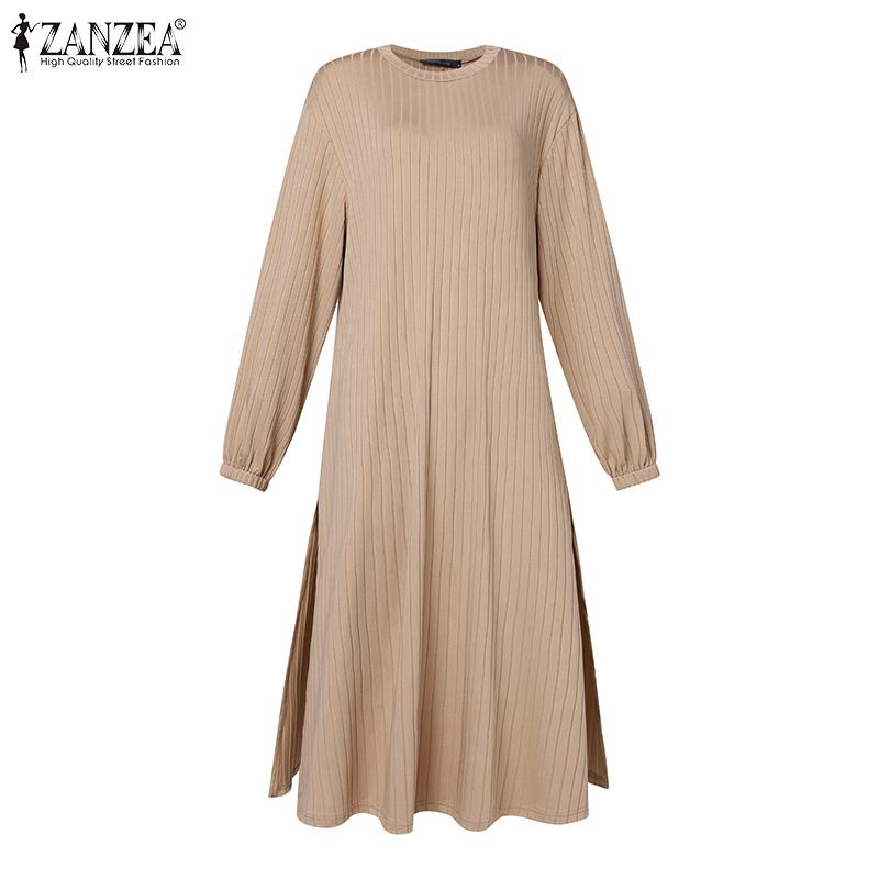 ZANZEA Женская повседневная свободная осенняя длинная блузка с длинным рукавом и круглым вырезом