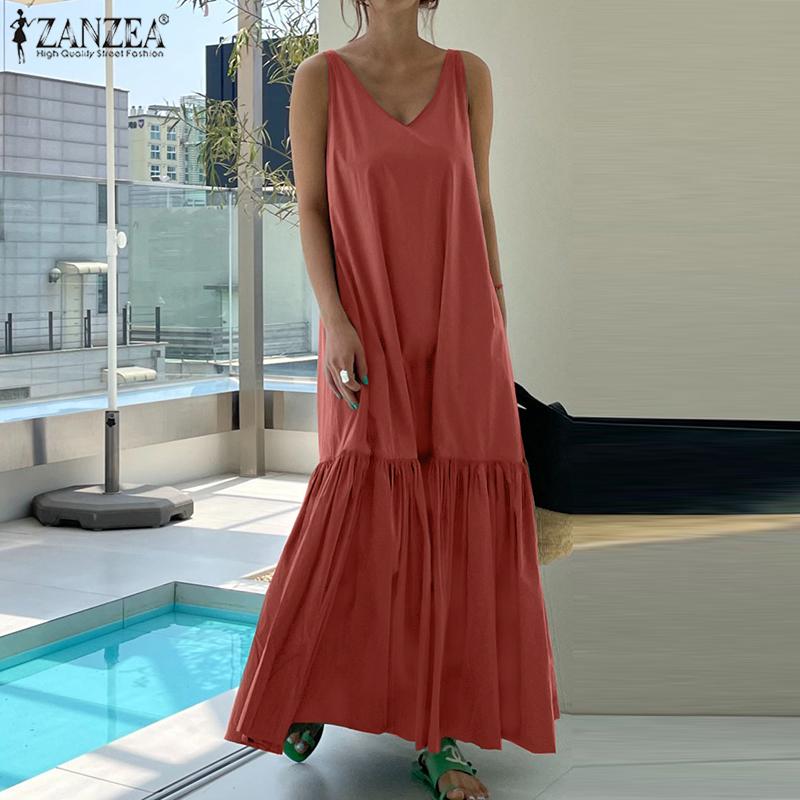 ZANZEA Женское летнее повседневное пляжное длинное платье без рукавов с v-образным вырезом