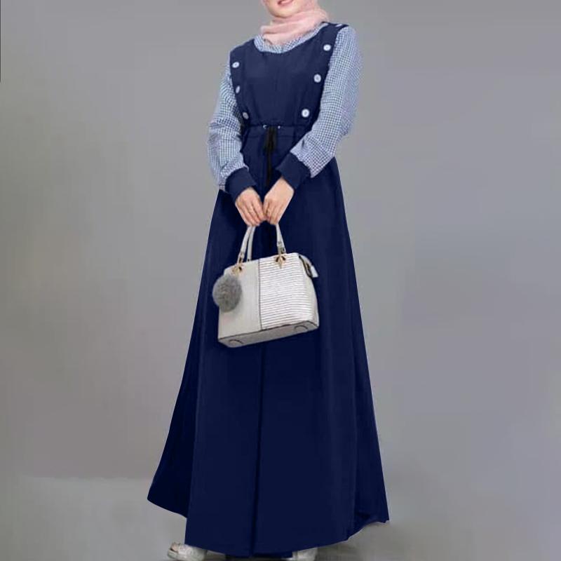 ZANZEA Женское повседневное длинное платье с круглым вырезом и длинными рукавами