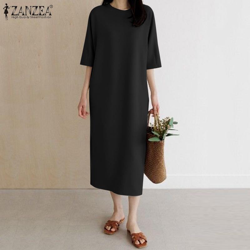 ZANZEA Женское повседневное летнее длинное платье с круглым вырезом и половиной рукавов