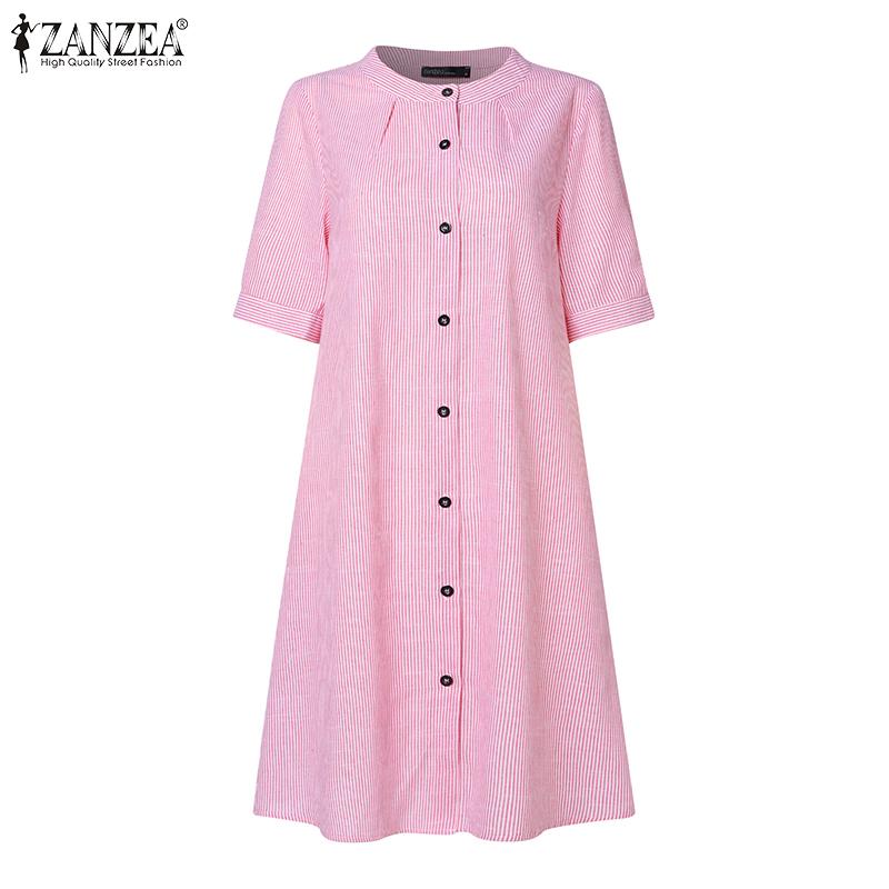 ZANZEA Женское повседневное летнее платье в полоску с круглым вырезом и половиной рукава