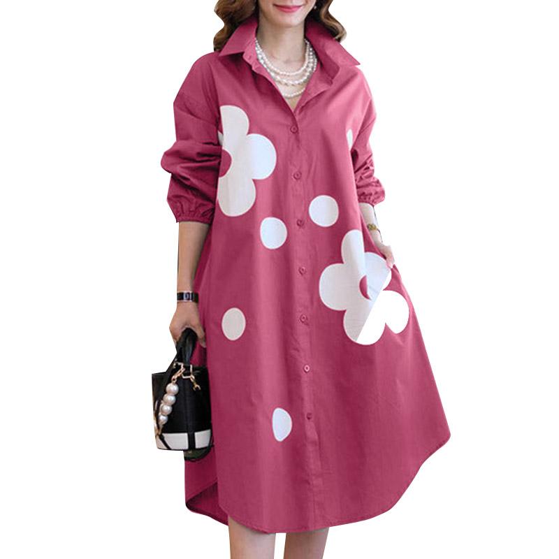 ZANZEA Женское повседневное летнее платье с отложным воротником и цветочным принтом 3XL ярко-розовый