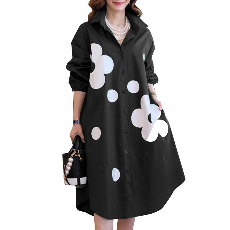 ZANZEA Женское повседневное летнее платье с отложным воротником и цветочным принтом S чёрный