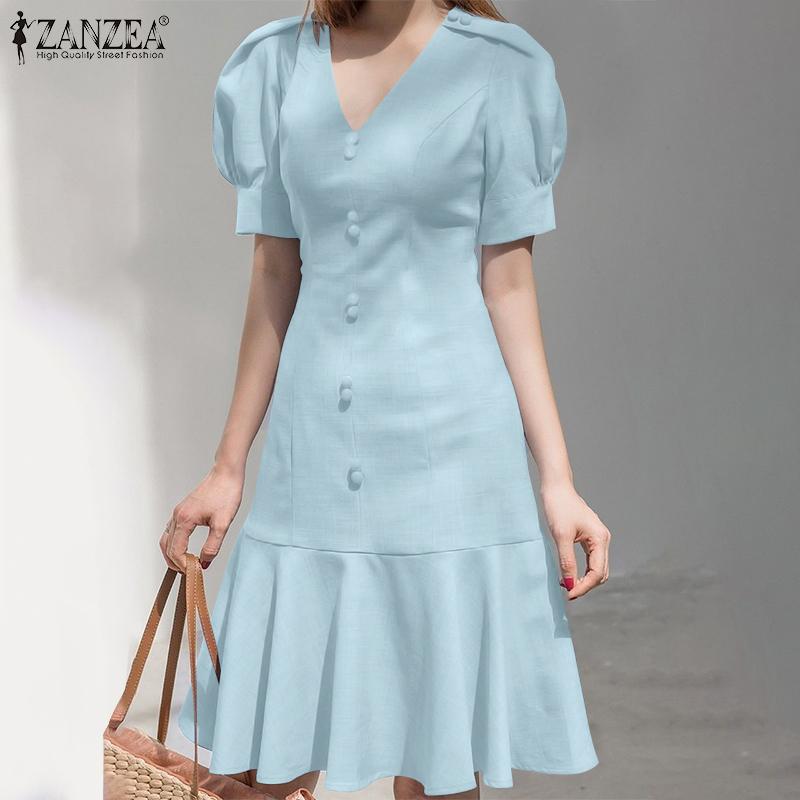 ZANZEA Женское повседневное летнее платье трапециевидной формы с v-образным вырезом и короткими рукавами