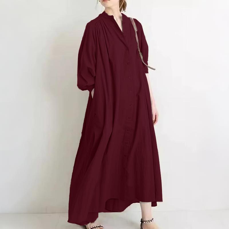 ZANZEA Женское повседневное платье с круглым вырезом, однотонное, с длинным рукавом, свободного кроя, длинное 2XL вино красного