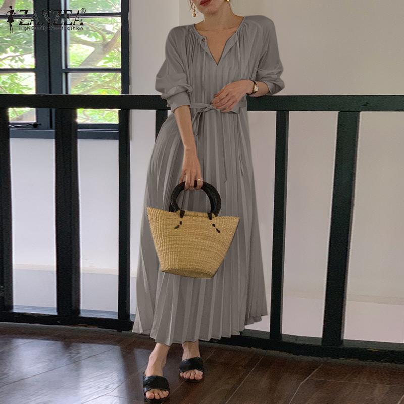 ZANZEA Женское повседневное праздничное длинное платье с v-образным вырезом и длинными рукавами