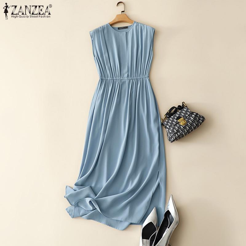 ZANZEA Женское повседневное свободное летнее платье без рукавов с круглым вырезом