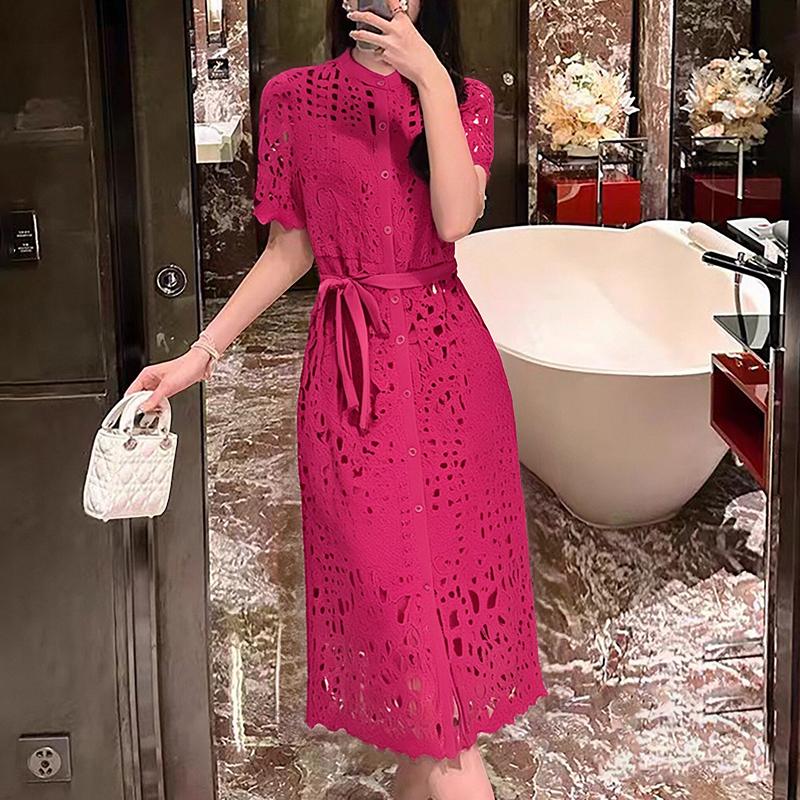 ZANZEA Женское элегантное платье с кружевной вязкой пэчворк, летнее, с коротким рукавом 5XL темно-розовый