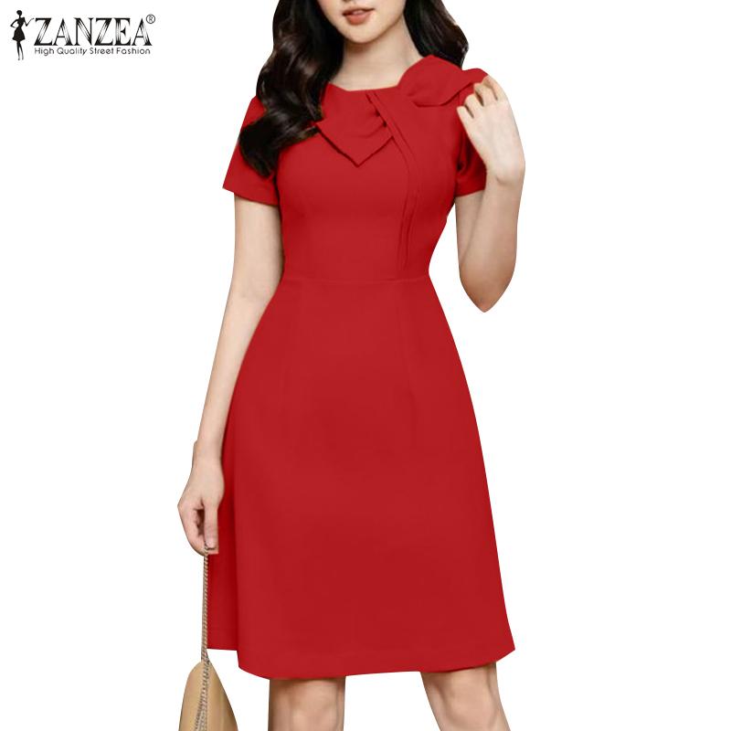 ZANZEA Женское элегантное повседневное платье с коротким рукавом и круглым вырезом