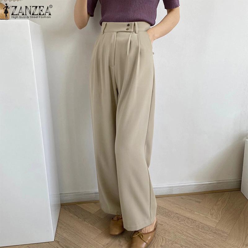 ZANZEA Женщины Повседневная эластичная талия Свободные брюки Однотонный цвет Летние широкие брюки