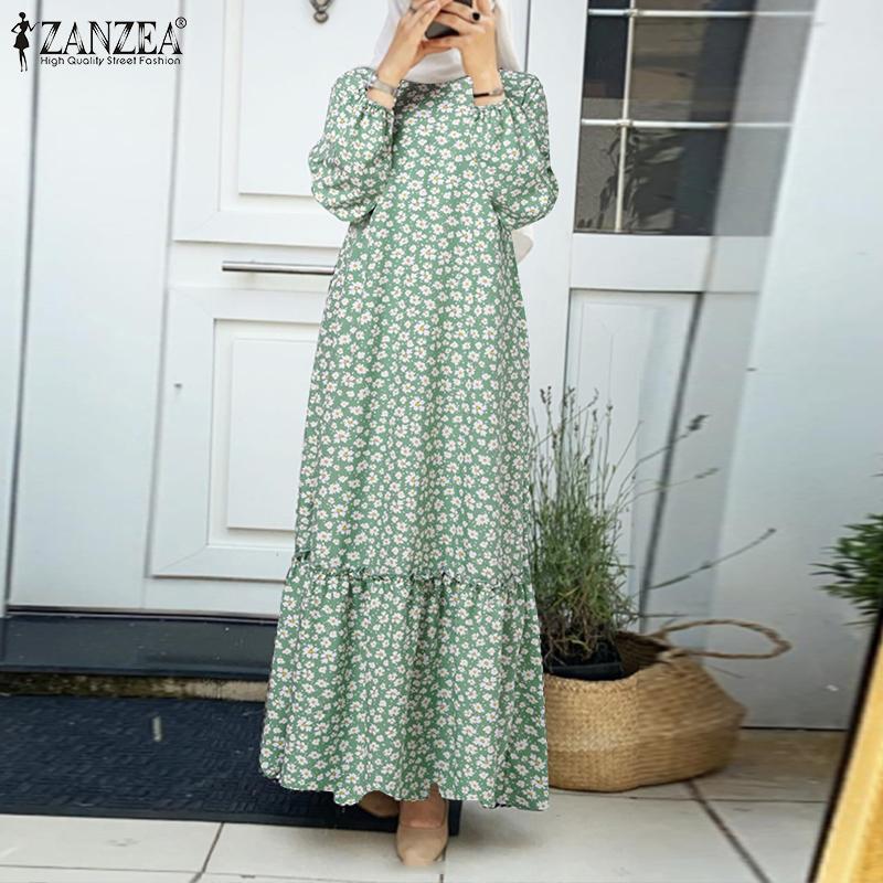 ZANZEA Повседневное свободное платье в стиле ретро с круглым вырезом и длинными рукавами: Стильный винтажный узор для женщин