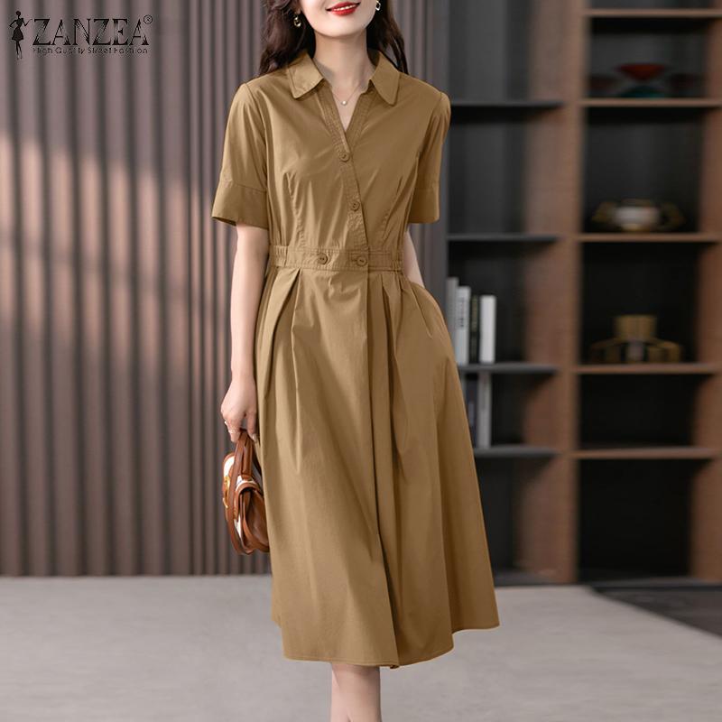 ZANZEA женское летнее повседневное платье трапециевидной формы с короткими рукавами и отложным воротником
