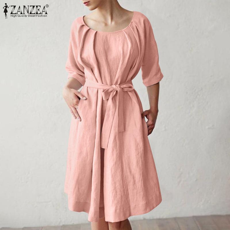 ZANZEA женское элегантное платье с круглым вырезом и рукавами и оборками, однотонное элегантное платье с талией и ощущением мышц