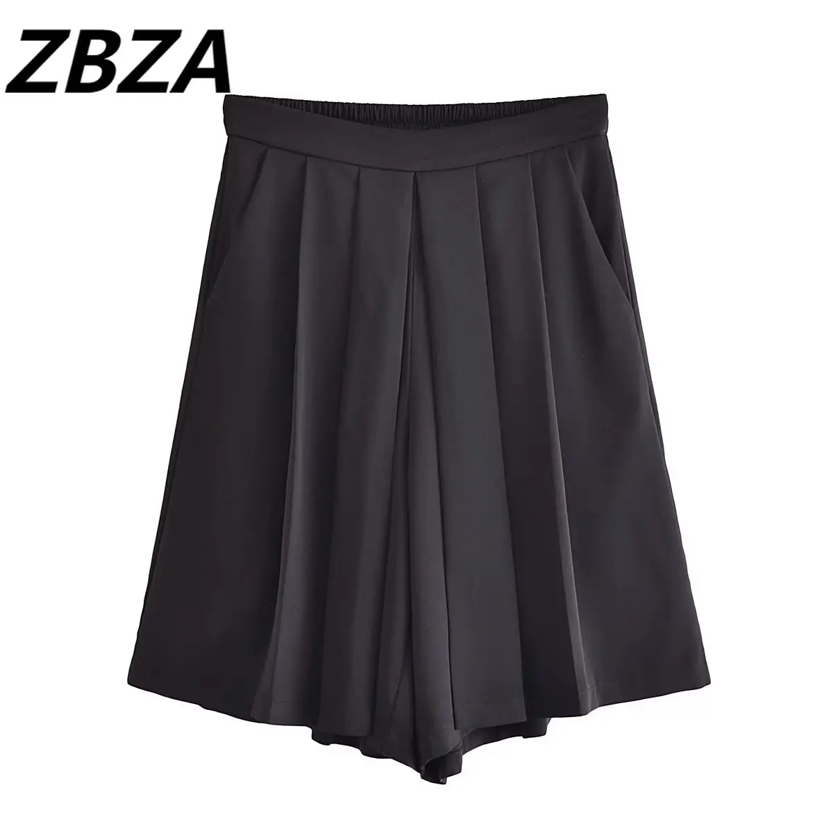 ZBZA Женская Осенняя Новинка 2023 шикарная модная летняя винтажная свободная плиссированная юбка-брюки с боковым карманом и эластичным поясом ...