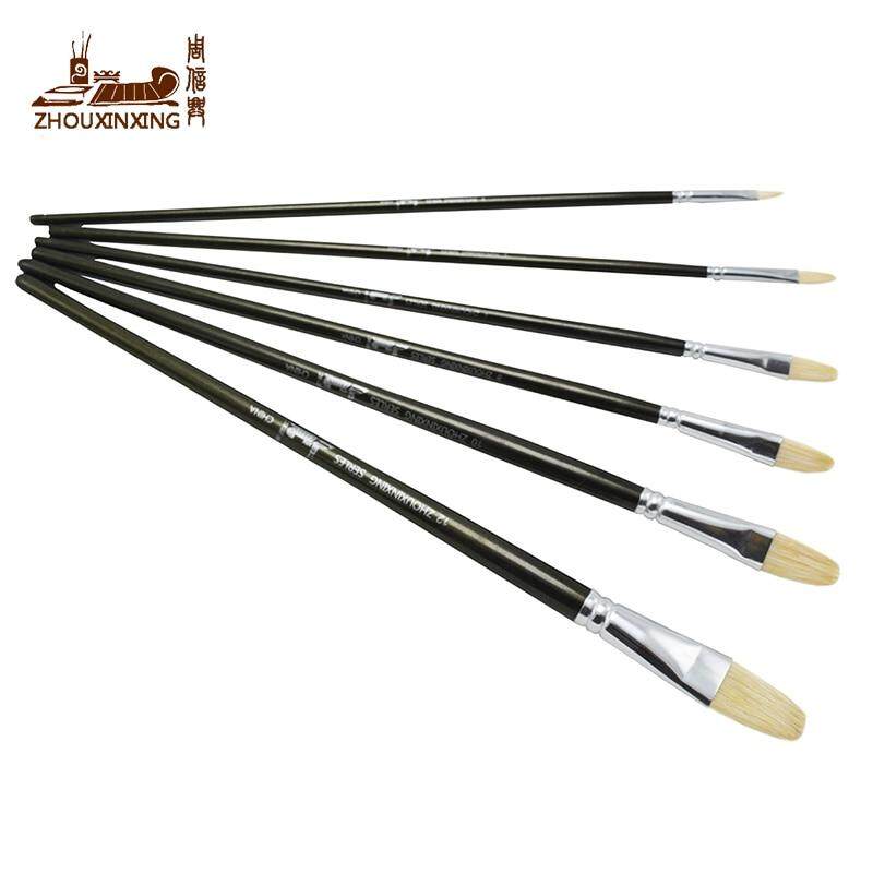 ZHOUXINXING 6шт / набор Свинья Щетина Волосы Фи Золото Черный Зеленый Бар Живопись Кисть Масло Акриловая кисть Рисунок Набор Художественные принадлежности