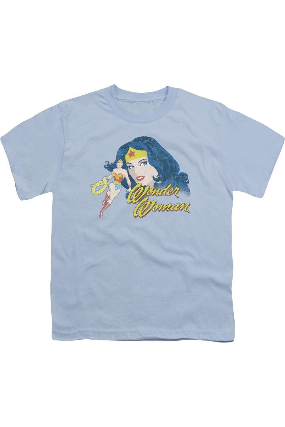 Футболка с портретом Лиги Справедливости Америки для детей Gildan, светло-голубой