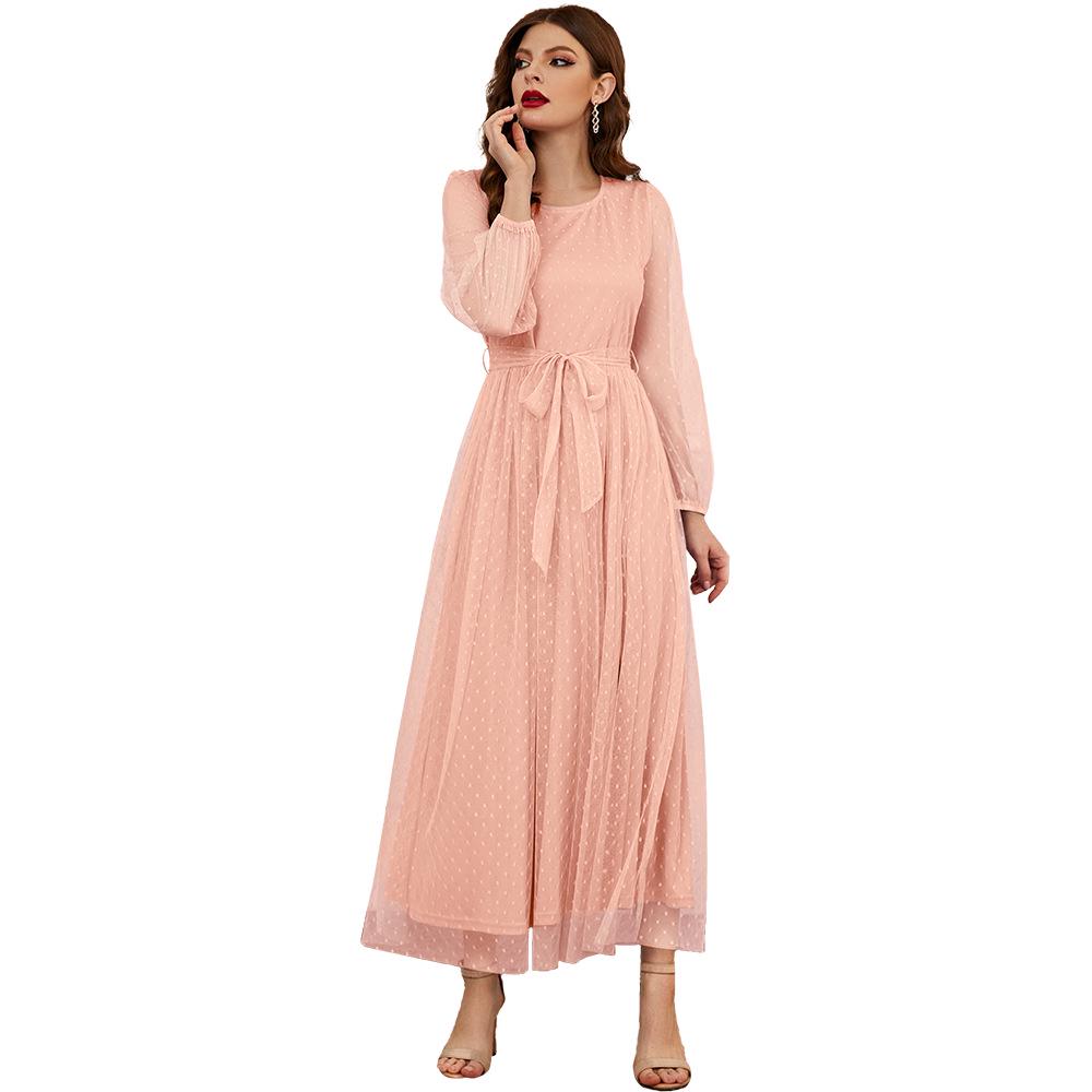 ZTY-465 2023 Осень/Зима Женское платье из сетки с коротким рукавом – Европейская и американская мода с круглым вырезом Extra Large