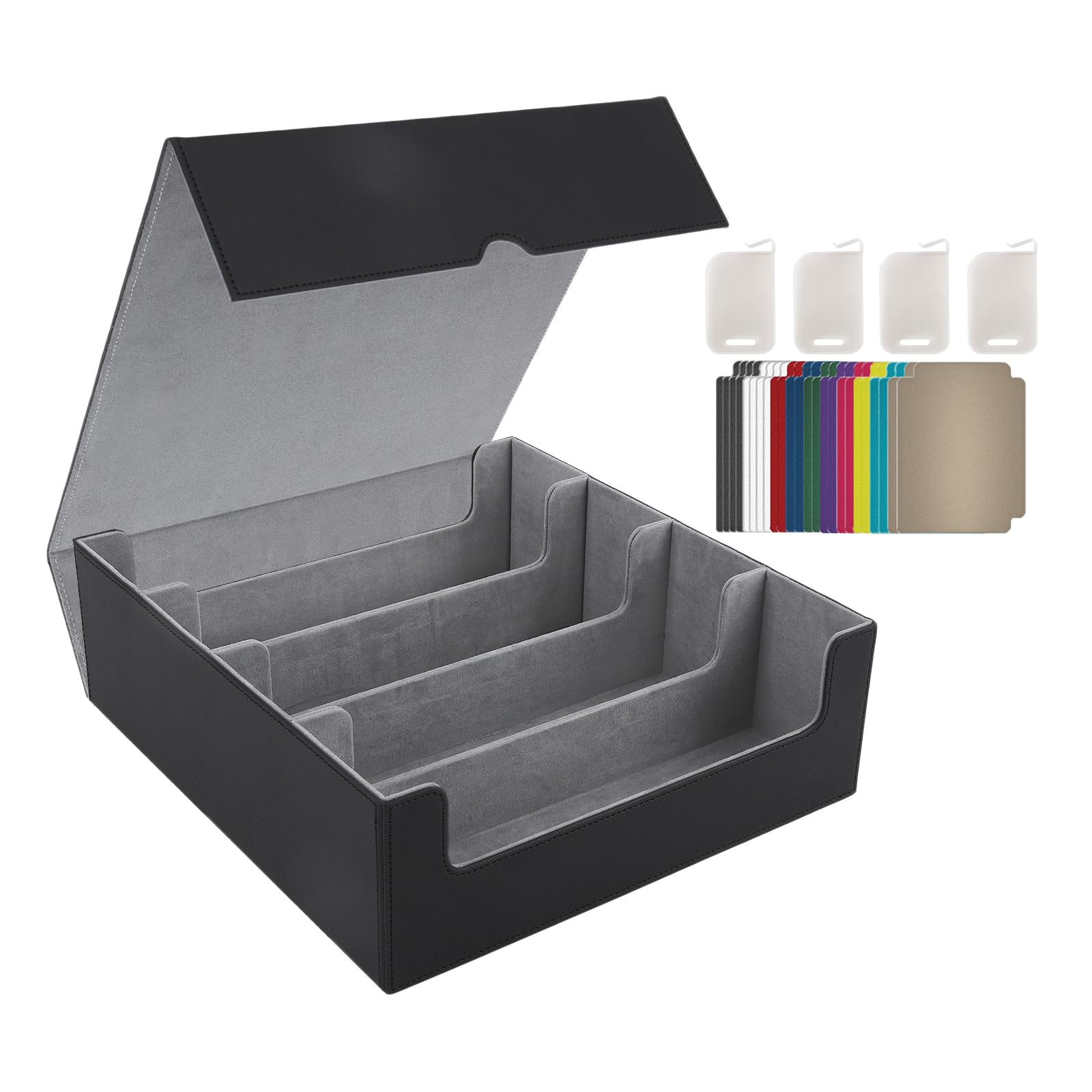 ZWSJLC Колода Карт Большая Карта ПУ Карта для Коллекционирования Карта для Коллекционирования Хранение 24 Стоппера для Карт с MTG и Различный Чехол для Карт, Хранение, Вместимость, Чехол, Кожаный, серый