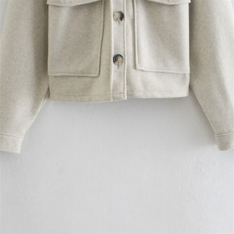 ZXQJ Женская коллекция 2021 года, модная шерстяная укороченная мягкая куртка с карманами, пальто, винтажная женская верхняя одежда на пуговицах...