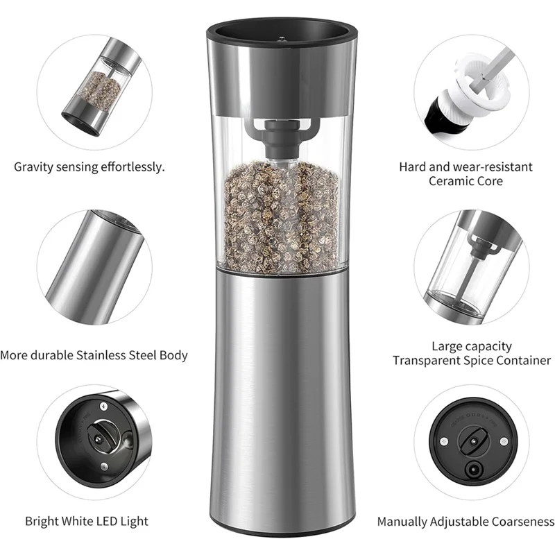 ZZ-1Set Электрическая мельница для соли и перца Набор электрических мельниц для перца + перезаряжаемая от USB