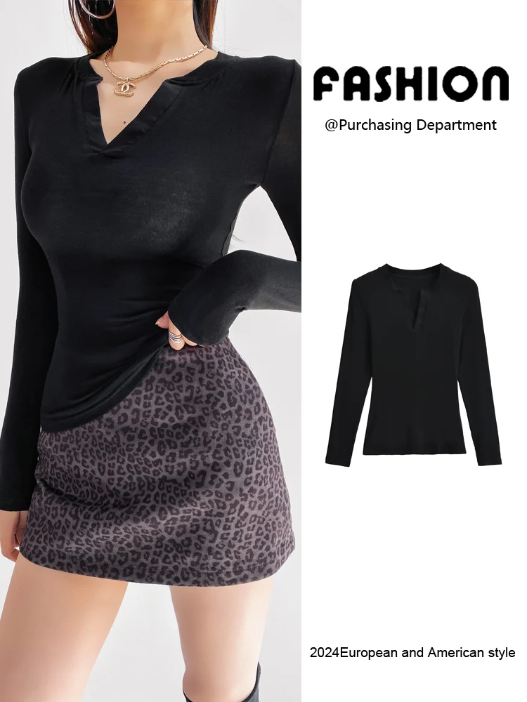 Za2024, осенняя новая женская универсальная прозрачная облегающая длинная футболка с полуоткрытым воротником, топ, высокая эластичность для поездок на работу