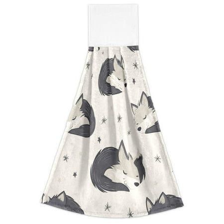 WOBOGO Cute Sleeping Wolf Hand Towel Set of 2 Absorbent for Kitchen and Bathroom With Velcro Hanging Loop 18.2×14in