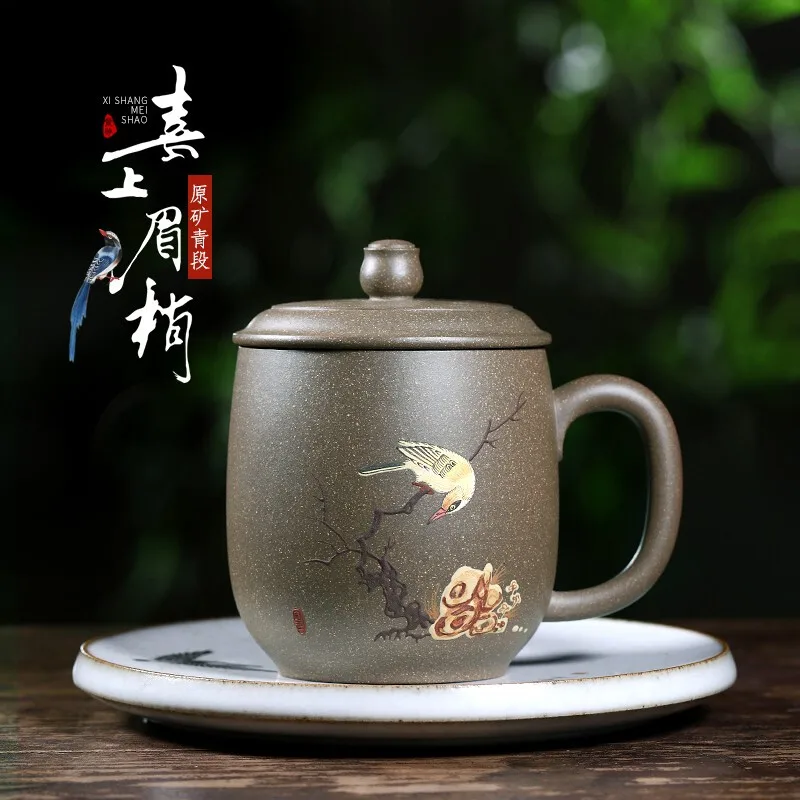Zanghutianxia bocкаро чашка чайная чашка и чашка с крышкой НЕОБРАБОТАННАЯ руда зеленая секция Полная ручная работа ворсовая роспись большая емкост...